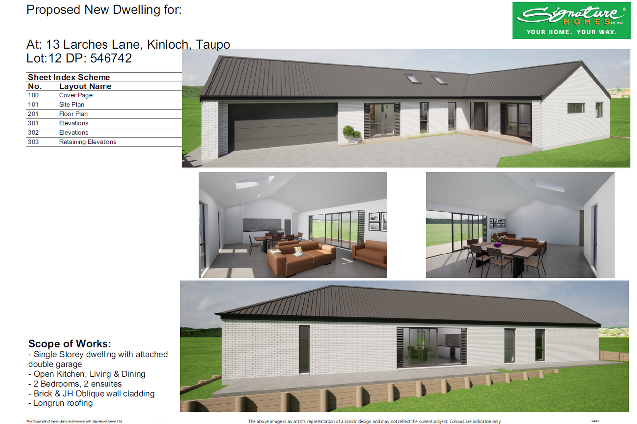 • Plans already in place with Signature Homes – a stunning 2/3 bedroom, 2 ensuite design with open living, double garage, and modern styling.