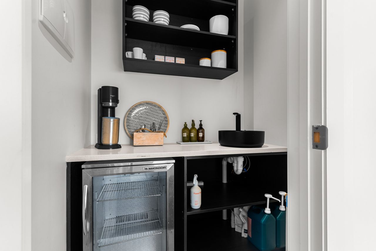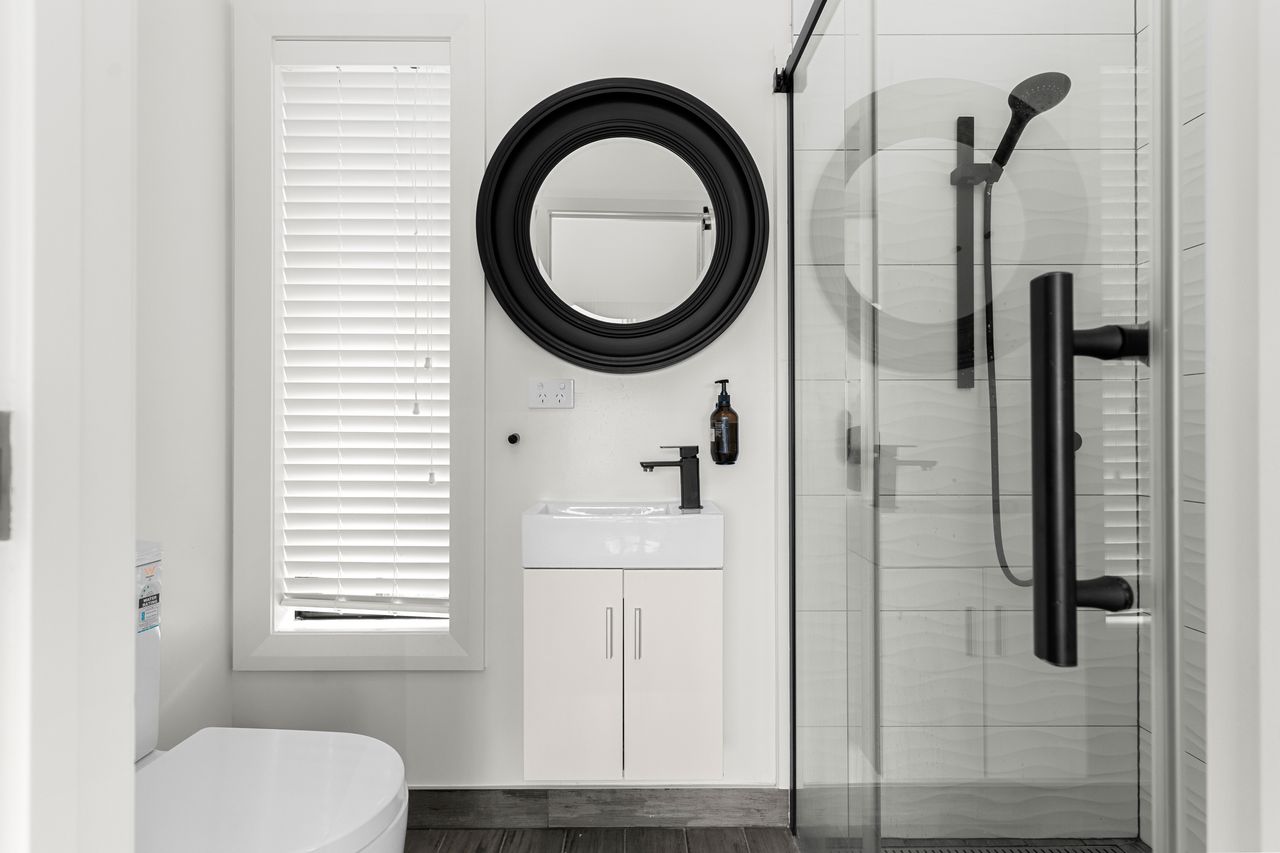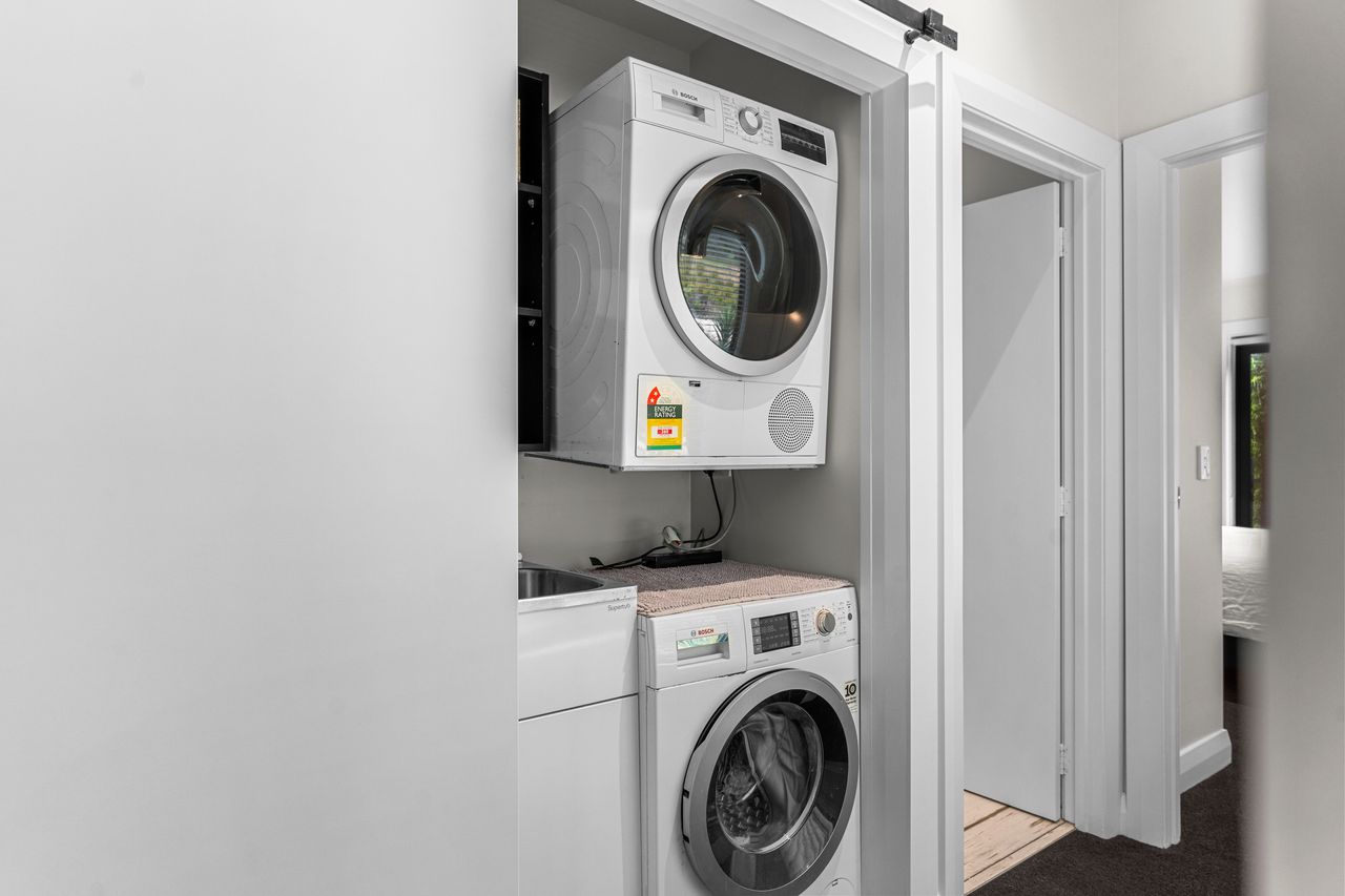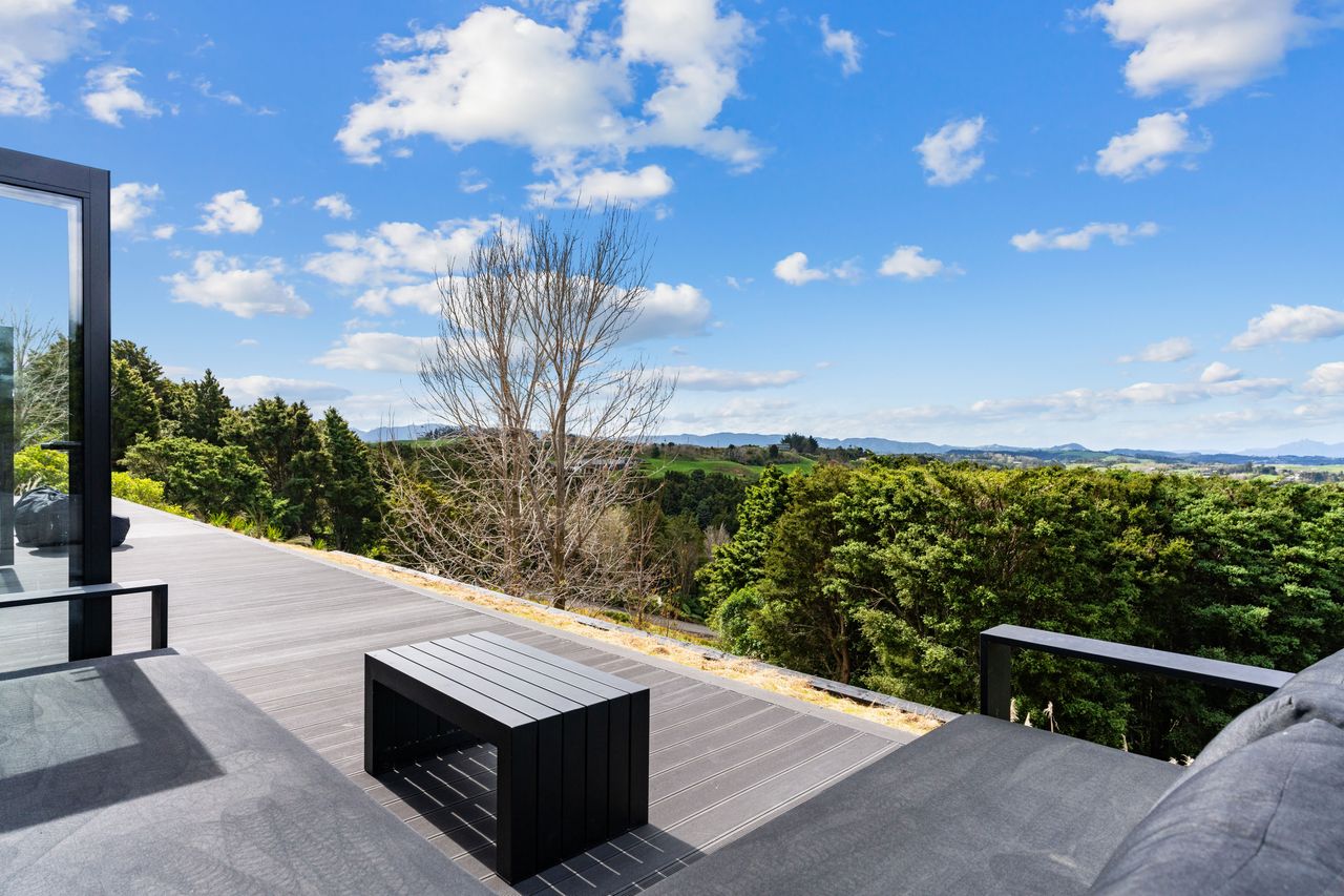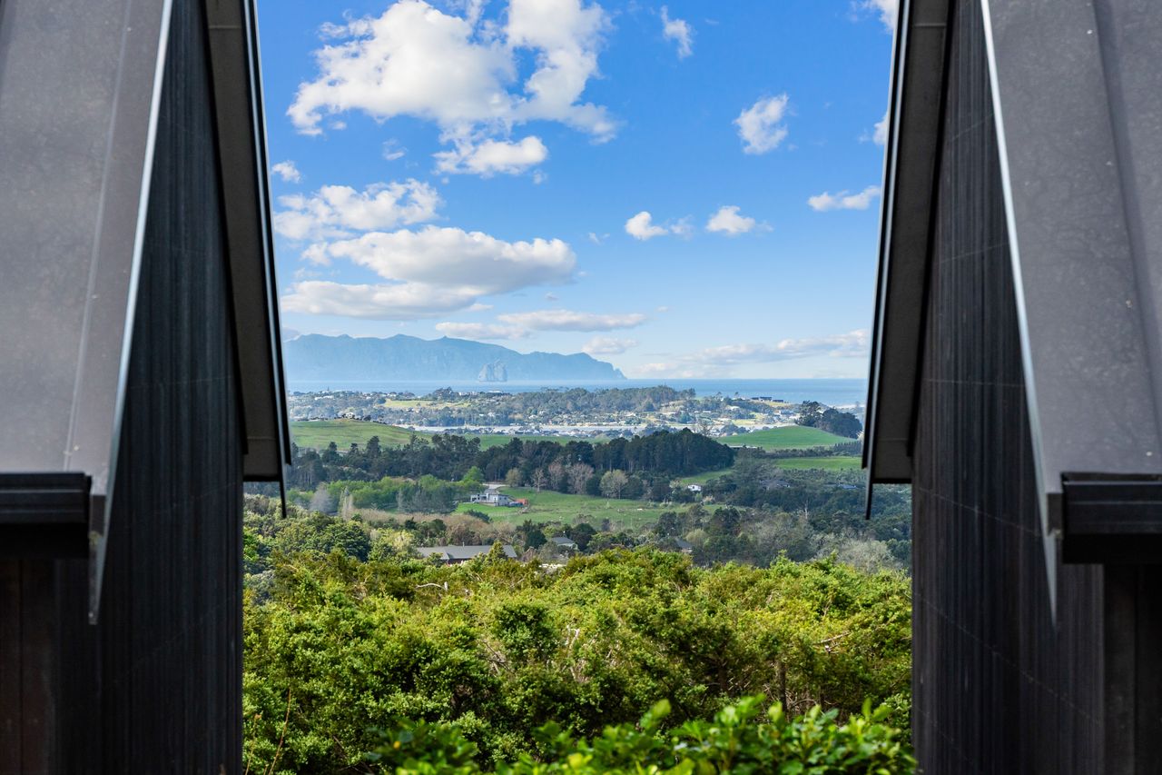 Recently refreshed inside and out, the home presents beautifully: new interior paint, a freshly stained exterior and decking, a new concrete driveway, and upgraded landscaping set the tone. The entry level centers on an airy, open-plan living area with a cathedral ceiling and expansive double-glazed sliders that frame the rural and water outlook. The sleek kitchen features an engineered-stone benchtop and an oversized storage cupboard for effortless everyday living. Two bedrooms on this level are thoughtfully separated by an acoustically insulated wall for privacy, served by a bathroom and a discreet pocket laundry.