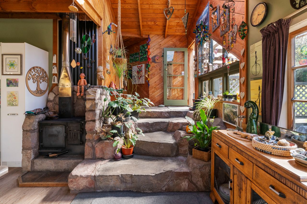 The cottage, unconsented yet utterly charming, is as cute as a button. Handcrafted from solid Macrocarpa with unique features including stone steps, it is sun-soaked, welcoming, and set among leafy surrounds. Wake to brilliant birdlife, enjoy morning coffee on the deck, and embrace the off-grid lifestyle. With a wet-back coal range, gas cooking, 25,000L rainwater tank, and cozy interiors, it’s an ideal retreat for families, holiday escapes, or a base while you build.