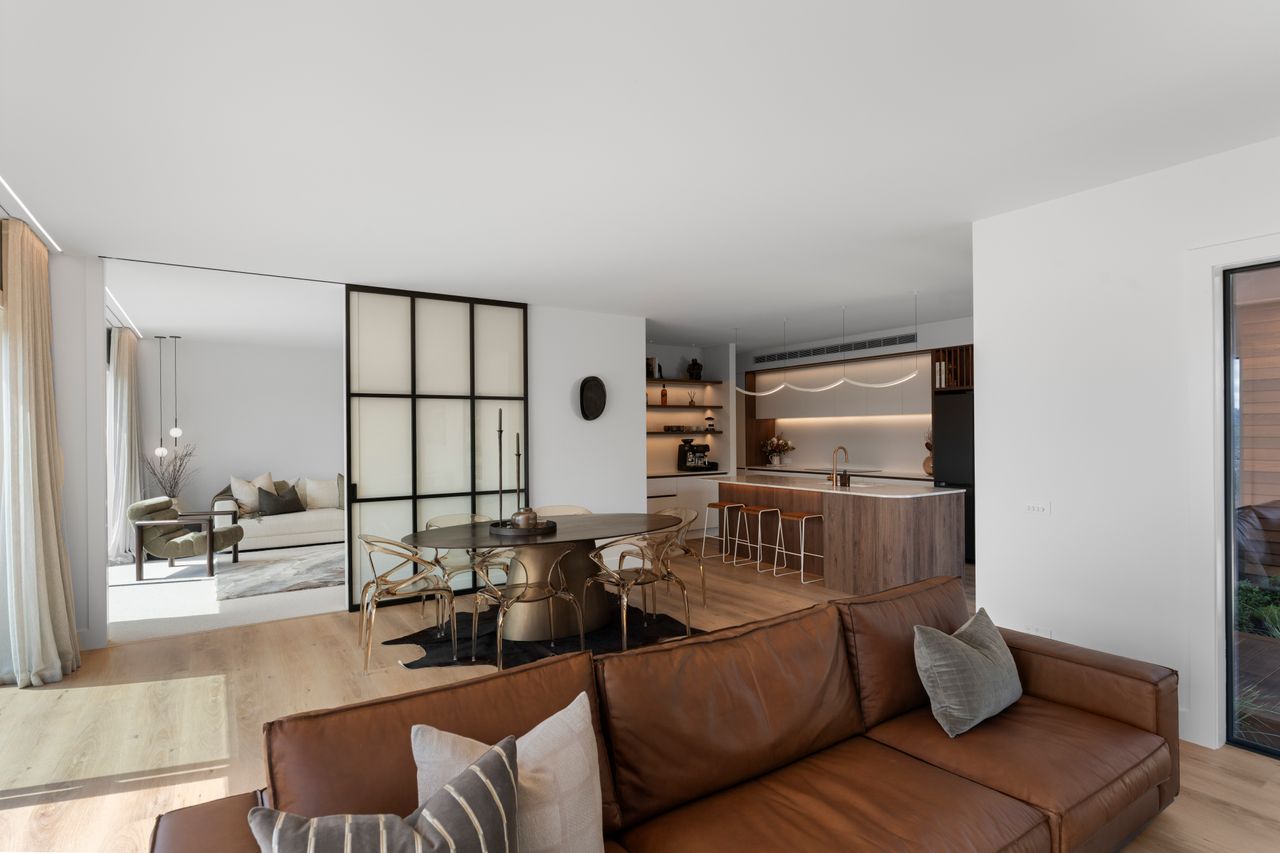 Designed and built by specialists in intelligent homes, the property features a 2.7 meter ceiling, fully integrated ducted air conditioning and high-spec architectural lighting. Future ready infrastructure ensures the home can evolve with technology and the owners desires, while mood settings allow effortless transitions from day to night.